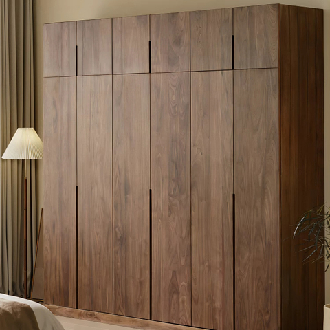 Modern Simple All-Solid Wood Wardrobe Black Walnut One-Door Cabinet for Home or Hotel Top-to-Bottom Bedroom Furniture