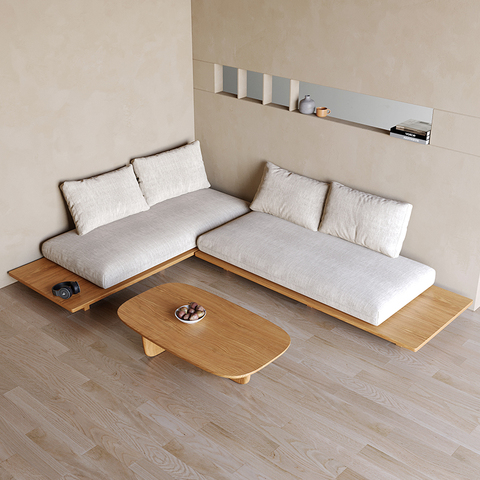 Japanese Style Sofa Solid Wood Fabric Large Villa Flat Apartment Homestay Corner Luxury Sectional Creative Wooden Sofa