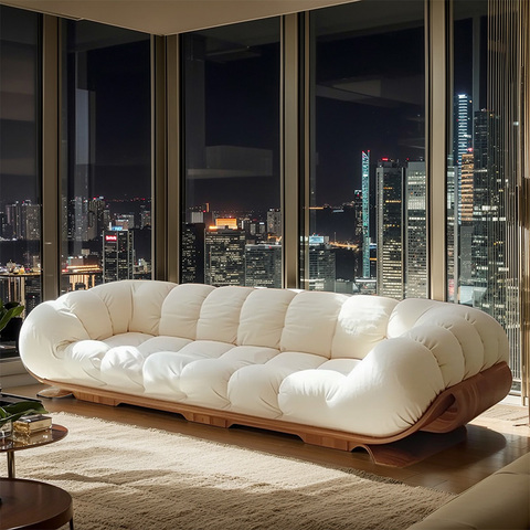 Cloud Wooden Sofa Living Room Luxury Cream Style Wabi-Sabi Modern Minimalist Art Villa Large Flat Fabric Solid Wood Sofa