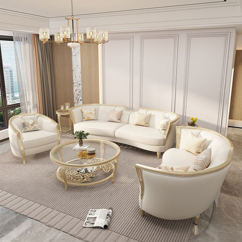 Italian Fabric Big Sofa Living Room Curved Home Furniture Light Luxury Creative Personality Puff Villa High-end French Sofa
