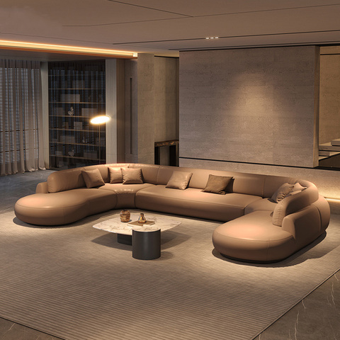 High-end Luxury U-shaped Leather Sofa Top Layer Cowhide Luxury Villa Large Apartment Living Room Home New Leather Sofa