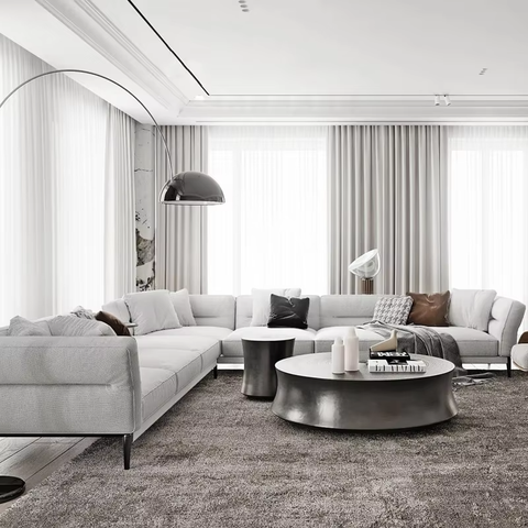 French Modern Fabric Sectional Sofa Set Villa Apartment Living Room Cream White Sponge Filled Lazy Recliner Sofa