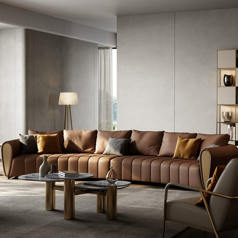 Italian Minimalist Large Flat Genuine Leather Sofa Original Furniture for Home Living Room Petal Design with Light Luxury